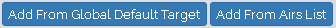 Components can be added from the global default targets or from the airs list .
